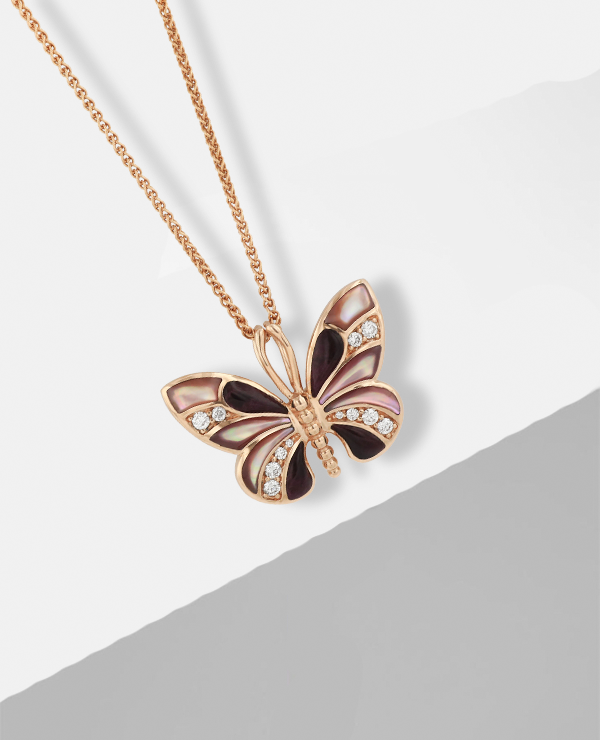 14KT Rose Gold Pendant with Inlay and Diamonds