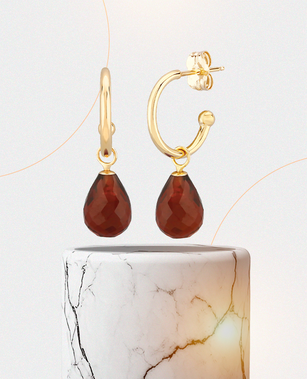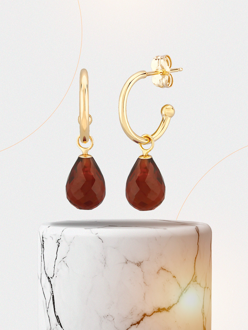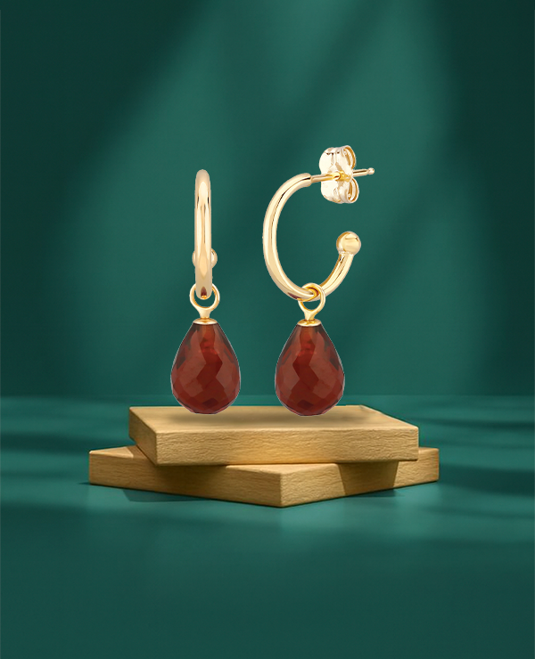 The Garnet Stone Earrings combine timeless luxury with bold color. Featuring 8x5mm semi-precious garnet stones set in 14K yellow gold hoops, these earrings bring fiery sophistication to any outfit. Lightweight, elegant, and meticulously crafted for all-day comfort.