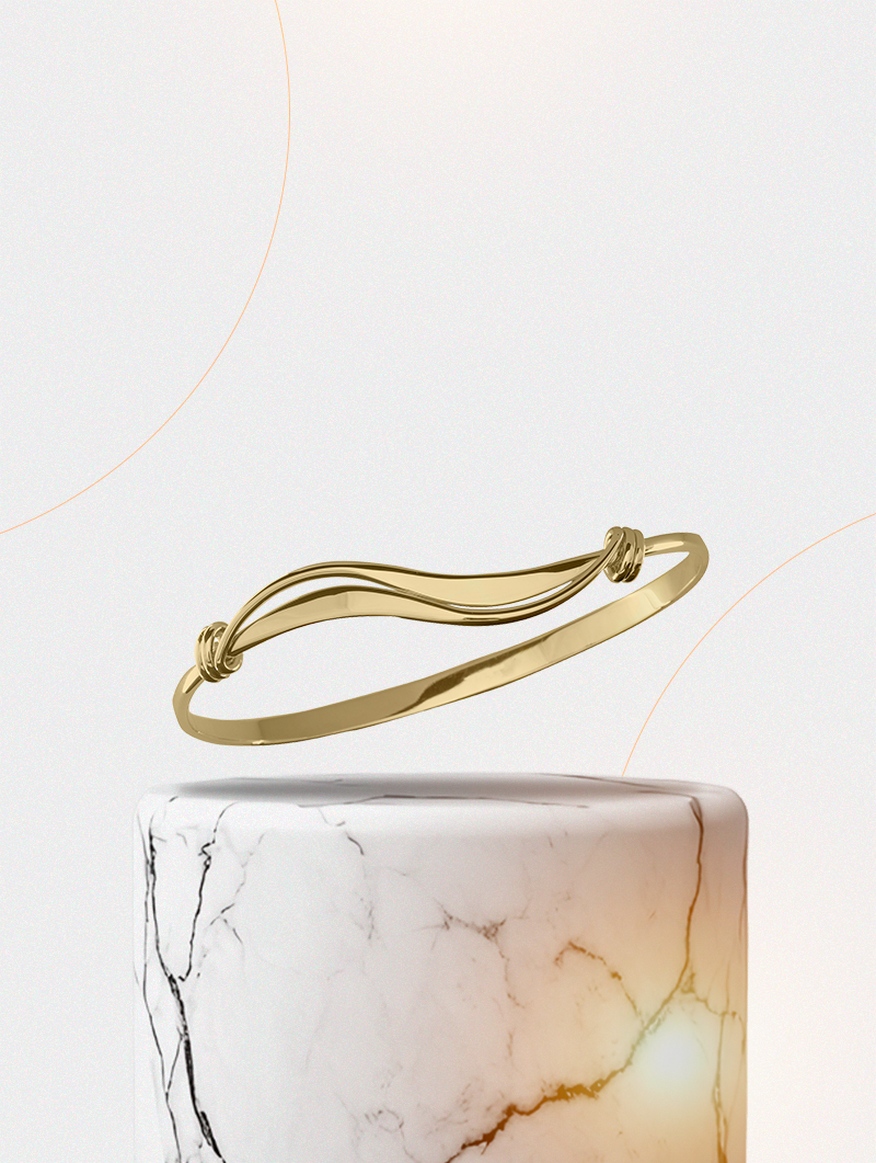 The Wave Bracelet captures the natural beauty of waves washing ashore with fluid lines and flowing design. Its spring mechanism allows effortless wear while maintaining durability. Handcrafted in sterling silver and 14K gold, this bracelet celebrates nature’s motion in timeless jewelry art.